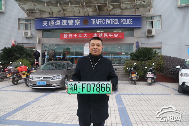 云陽網訊(記者 鄧磊)“真是太高興了!”1月3日,閭先生在云陽車輛管理所業務大廳通過自主搖號,選中了心儀的車號渝A·F07866。這也是我縣發出的首副新能源汽車專用車牌。