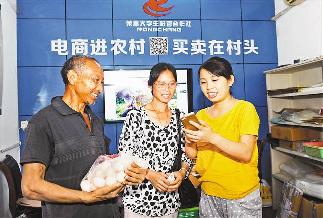 榮昌區(qū)安富街道通安村,大學(xué)生村官?gòu)堁ㄓ遥┫虼迕窠榻B如何用手機(jī)在電商平臺(tái)上銷售農(nóng)產(chǎn)品。
