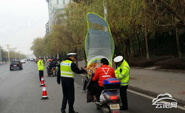 本次整治行動由縣交巡警大隊、安監局、城管局等多個部分聯合開展,執法人員分成三個小組,分別在城區濱江大道、云江大道、北城大道等主干道設卡,重點對電動車的超員、不戴頭盔、亂加遮陽傘等違法行為進行查處。檢查中,執法人員發現電動車駕駛員不戴頭盔、亂加遮陽傘的情況較多,對這些違法行為一一進行了處罰,還向市民宣傳相關的道路交通安全法規,大家聽后都主動拆除了電動車上加裝的雨篷或遮陽罩。