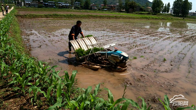 云陽:農民備春耕 水稻機插秧田間顯神威