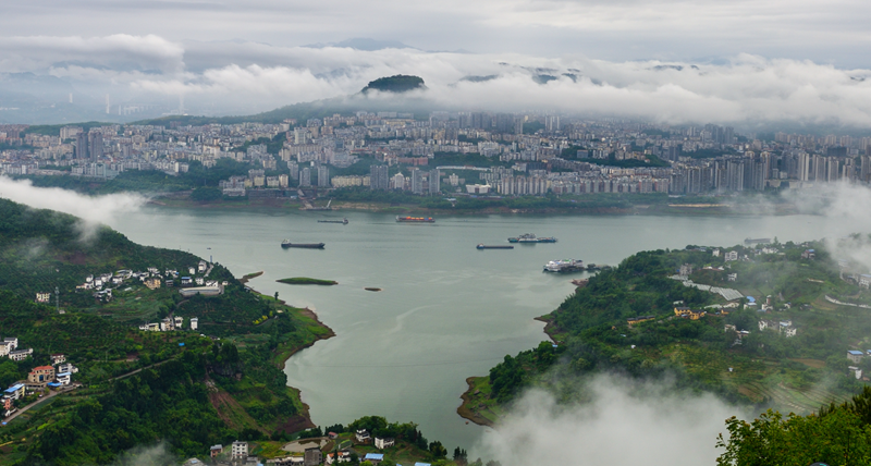云陽縣城雨中景象 若隱若現恍如仙境