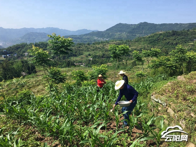 云陽網訊(記者 劉雪梅 通訊員 黃搏智)5月7日,南溪鎮紅巖村扶貧指揮所的干部手拿鋤頭,頭帶草帽,走進農戶的田間地里,幫助貧困戶栽種的包谷苗追肥除草。
