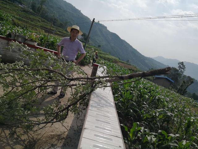 5月15日清晨,指揮所所長胡銘同志帶領駐村工作隊員來到田間地頭查看受災情況。在巡查中發現,狂風暴雨掀翻了屋頂,吹落了瓦片,吹斷了果樹,吹倒了莊稼……父老鄉親們眼看著長勢正旺、收獲在望的莊稼一夜之間就沒了,他們有的急了、有的哭了。
