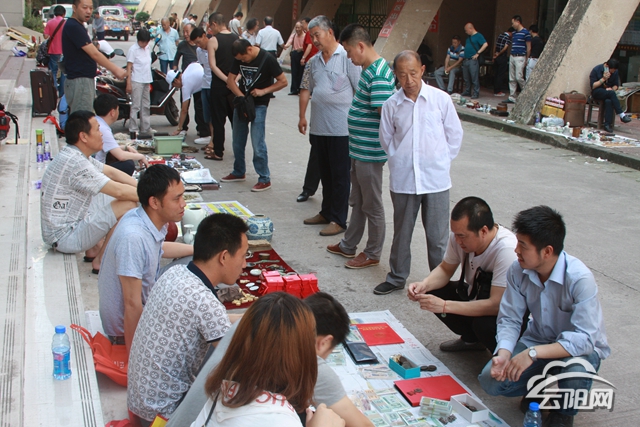 剛過早上八點,縣文化藝術品市場已經熙熙攘攘,很是熱鬧。一位經營者告訴記者,經常到市場的老主顧很多,因為都很喜愛古玩,所以早已成為朋友。建于2016年的云陽文化藝術品綜合交易市場,將縣體育場周邊28個門市連片裝飾,采取個體業主或“公司+商戶”模式,吸引了38家商戶入駐。經過一年多來的不斷完善,目前已成規模,是渝東北目前規模最大的集古玩、字畫、奇石、瓷器、木雕、花卉等為一體的文化藝術收藏品交易市場。每到周末,都會吸引很多云陽周邊的古玩愛好者前來交流、交易。展品中,蘊含著云陽濃厚的巴文化、三國文化、鹽文化和移民文化等地域文化特色的藏品讓古玩愛好者們愛不釋手。