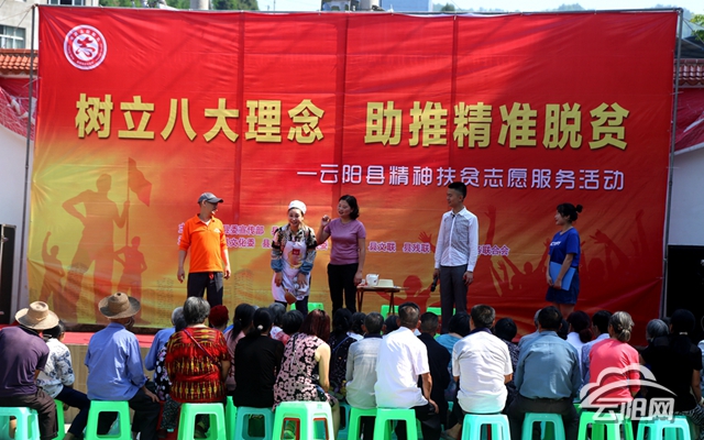 文藝表演中,志愿者們通過快板《精準扶貧勇攻堅》、小品《扶貧軼事》、歌舞《扶貧路上》等節(jié)目向大家宣傳“八大理念”,提高群眾自強不息的意識。“今天的節(jié)目很有意義,我要將志愿者們宣傳的八大理念知識寫進家風(fēng)家訓(xùn)里。”觀看節(jié)目的任軍說。