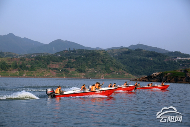 隨后,無人機在江中心的一個小島上發現15名群眾被困。“各船向江心島進發!”整個湖面一片機器的轟鳴,沖鋒舟一會兒成一字型排開,一會兒成“S”型隊形,在平湖水庫有序穿行。他們根據無人機提供的信息,從各個不同的方位靠岸,對被困人員進行搜尋。找到目標后,民兵迅疾登岸,為被困群眾穿好救生衣,送到沖鋒舟上,運往安全地段。