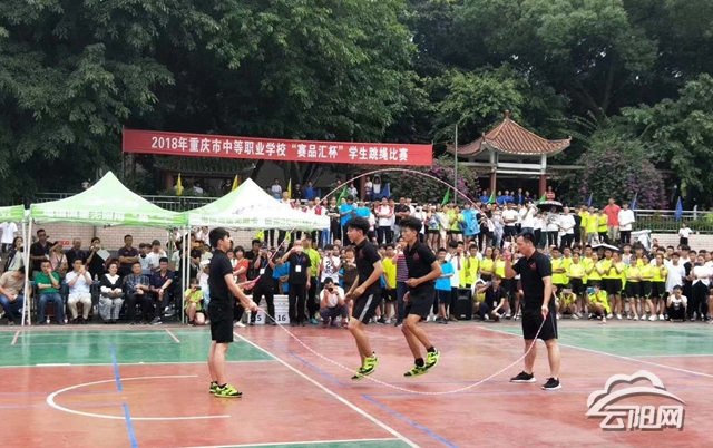 本次比賽由重慶市教育委員會主辦,全市24所中職學校的近500名運動員參賽。在男子3分鐘單搖賽中,該校選手何光偉以829個、遙遙領先第二名27個的成績榮獲第一名;同時,何光偉還與許瑞鴻搭檔以226個的成績獲取1分鐘雙人單搖第一名;楊秋英和伍靜以195個的成績獲1分鐘女子雙人單搖第一名;楊秋英、沈玉林、梁金和伍靜以921個的成績斬獲4乘1分鐘接力第一名。