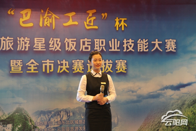 本次大賽共設四個項目,分別為中餐宴會擺臺、西餐宴會擺臺、客房整理和雞尾酒及飲品調制,同時在比賽中還要求所有參賽人員均須說一口流利的英語,評委老師模擬參賽選手日常工作場景,以英譯漢、漢譯英、情景對話三種形式對選手進行測試。