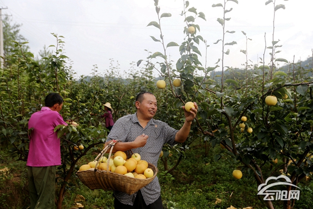 近年來,該鎮通過技術改良,強化科學管理,對黃冠梨實施人工授粉、果實套袋、生物防治,實現黃冠梨豐產變“黃金”。 目前,該鎮已發展梨子近1000畝,按平均畝產2000斤算,一年銷售近200萬斤,經濟效益明顯。(記者 李充 攝)