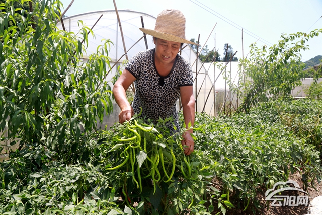 近日,在后葉鎮(zhèn)吉慶村的生態(tài)蔬菜大棚基地里,工人們正在采摘辣椒。據(jù)悉,該基地有大棚蔬菜100畝,種植有生姜、西蘭花、番茄、辣椒等時蔬,年收入達20余萬元,解決了當?shù)?0個村民就業(yè),月收入2000元左右。(王彬彬 攝)