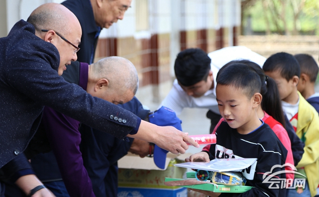 “叔叔阿姨們給我發了新衣服、新書包、新文具,可以幫助我的學習進步,我覺得很開心,我會好好學習 天天向上。”耀靈小學書院村小三年級一班的學生譚海山激動地說。