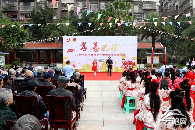云陽網訊(實習生 劉浮生)10月16日,為慶祝傳統佳節重陽節,大力弘揚中華民族尊老敬老的傳統美德,豐富老年人的文化生活,由共青團云陽縣委主辦的“情暖重陽·孝善巴渝”2018年云陽縣青少年敬老愛老主題活動在云陽縣城鄉福利院舉行。