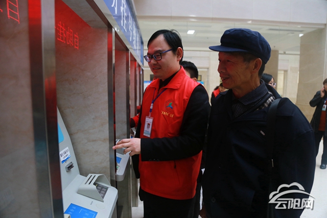 云陽網訊(記者 王彬彬)近日,記者來到縣人民醫院的一樓大廳里,看到身穿紅色馬甲的志愿者黃偉,此時,他正用左手為一位姓劉的老年患者掛號,掛號完后,他還叮囑老人要保存好這些單子,并將其送到電梯口。