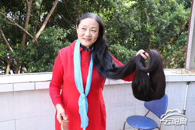 《格林童話》里有個萵苣姑娘,她有一頭美麗而具有魔力的長發(fā),能從高塔垂直到地面,正是憑著這頭長發(fā),她遇見了愛她的王子。而家住雙江街道杏家灣社區(qū)的六旬阿姨程世瓊,也有一頭和萵苣姑娘一樣的長頭發(fā),而她也正是為自己深愛的“王子”而留。