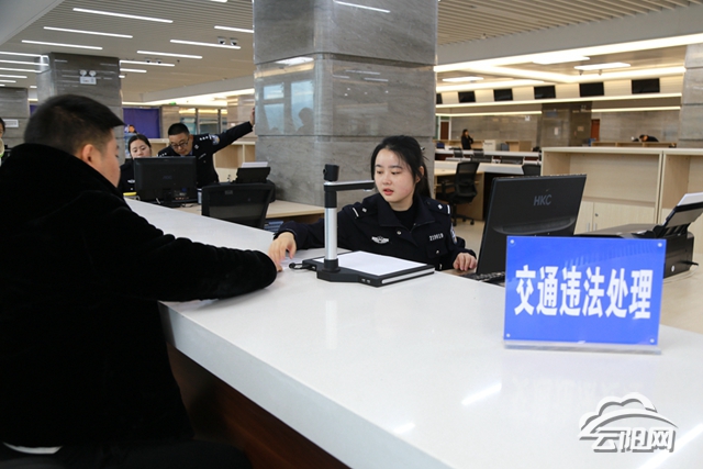 云陽網訊(記者 王彬彬)“你好,請問有什么可以幫助您的嘛?”近日,記者來到位于云商大廈行政服務中心交通違法處理窗口,周昳敏正在為群眾辦理業務。