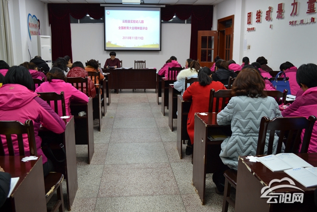云陽網訊(實習生 鄧庭庭)11月19日,實驗幼兒園在三樓會議室召開了學習貫徹全國教育大會精神宣講會,全體教職工參加了宣講會。
