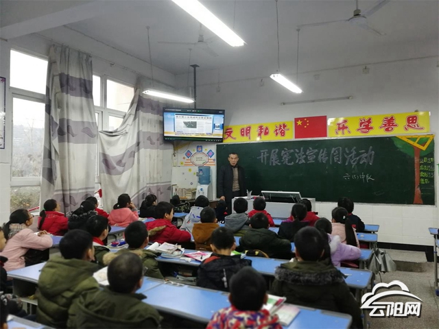 各班老師利用班班通,組織學生收看網絡直播,同步跟讀。學校還在校園內廣泛開展了一系列憲法宣傳活動,把憲法教育融入升旗儀式,利用黑板報、紅領巾廣播站、主題班隊活動、憲法知識競賽、演講比賽等多種形式,多渠道傳播憲法精神,開展憲法學習宣傳教育,培育校園憲法文化,增強學生憲法意識,引導青少年從小養成尊崇憲法、遵守憲法習慣。