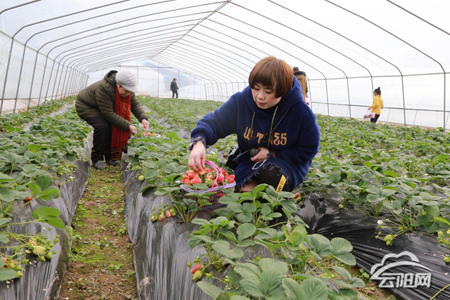 云陽網訊(記者 王彬彬 實習生 鄭紅均)12月12日,記者來到盤龍街道長安社區草莓采摘基地,只見大棚里綠油油的草莓葉下長著殷紅的草莓,不少市民正在體驗采摘樂趣。