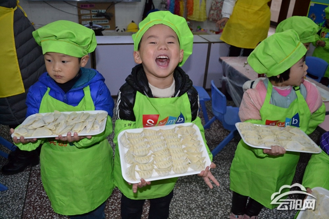 活動前,老師通過PPT課件、視頻、音樂等為小朋友講述冬至節(jié)的由來及習(xí)俗,孩子們認(rèn)真的聆聽著,并積極踴躍的向老師提問,充分展示了他們求知的欲望。隨后,老師向小朋友們介紹了包餃子需要的材料,并邀請一位家長為小朋友做包餃子的示范,接著孩子們在老師和家長的指導(dǎo)下開始包餃子,孩子們一個個躍躍欲試的心情溢于言表,有的搟、有的包,氣氛非常的活躍,最后孩子們向大家展示了各自親手制作的餃子,一個個形態(tài)各異,千姿百態(tài)。老師和家長將集中包好的餃子送進(jìn)廚房,在等待煮餃子的過程中,小朋友們系上圍裙、洗手、唱兒歌、講故事、做游戲等,在吃到自己動手包的餃子時,孩子們個個臉上洋溢著幸福的笑容。