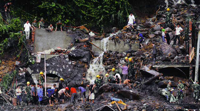 88.戰勝“9·1”特大暴雨洪災 2014年8月30日至9月1日,云陽縣北部鄉鎮連降暴雨,致江口、桑坪、路陽、沙市、魚泉等鄉鎮不同程度受災,涉及30.5萬群眾,因災死亡28人,失蹤4人,直接經濟損失28.5億元。面對突如其來的災害,在縣委、縣政府的組織下,全縣各級各部門盡職盡責,各級黨組織充分發揮戰斗堡壘作用和先鋒模范作用,帶領人民群眾萬眾一心、自力更生,開展抗災搶險及災后重建。在抗洪救災中,云陽縣得到中央、市委以及全市各系統、社會各界人士的支持和幫助,慈善會累計接受捐款捐物3100多萬元,其中物品折資147.9萬元。緊急轉移安置受災群眾32532人,發放自然災害生活救助資金1155.7519萬元。各行業部門加強救災物資發放和基礎設施、房屋災后重建等工作,保障了受災群眾的基本生活。2015年4月災后重建工作基本完成。