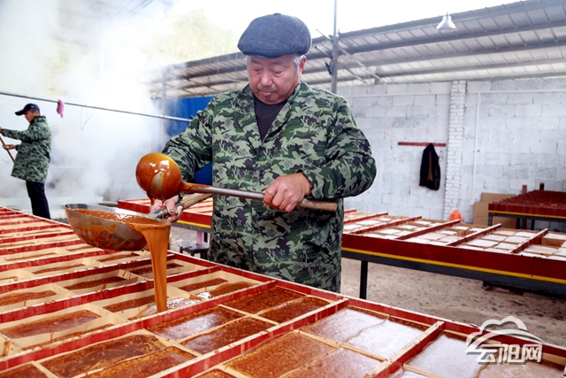 隨后,記者來(lái)到村里的紅糖加工廠,看到制糖師傅們正在榨汁、開泡、趕水、打沙,每一道工序都由人工操作,熬制出的紅糖經(jīng)過(guò)定型、冷卻,古法熬制的紅糖就可上市了。