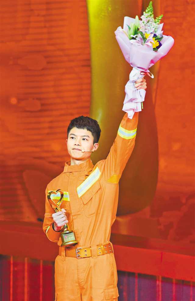頒獎(jiǎng)詞:與火魔搏擊,與死神賽跑,你在生與死的較量中不斷成長(zhǎng),滄海橫流,真金火煉,你用一等功的勛章點(diǎn)燃榮耀,赴湯蹈火,一往無(wú)前,只為萬(wàn)家燈火下的歲月靜好——熱血男兒。