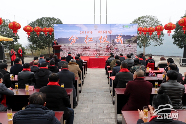 儀式上,對2018年三峽陽菊種植情況進行了總結(jié),對表現(xiàn)突出的優(yōu)秀村集體經(jīng)濟組織和種植戶進行表彰和分紅。分紅涉及16個鄉(xiāng)鎮(zhèn)(街道)28個村(社區(qū)),分紅金額共計75萬余元。