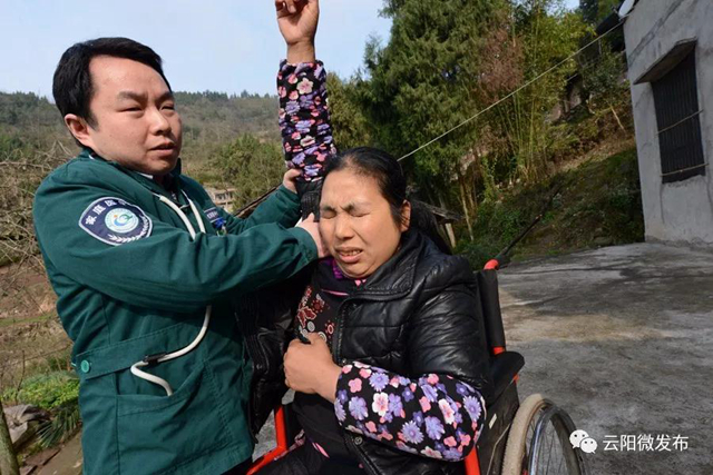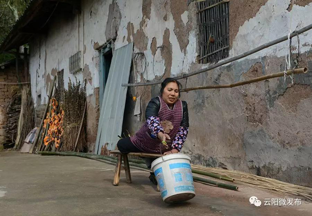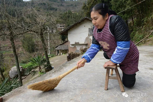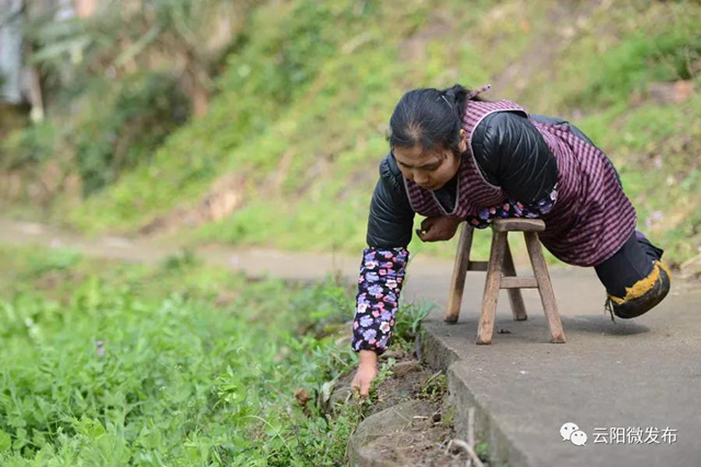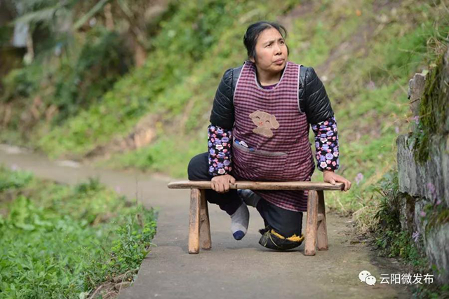 云陽紅獅雙腿殘疾農婦靠板凳走路,栽秧撻谷挖地種菜樣樣都干