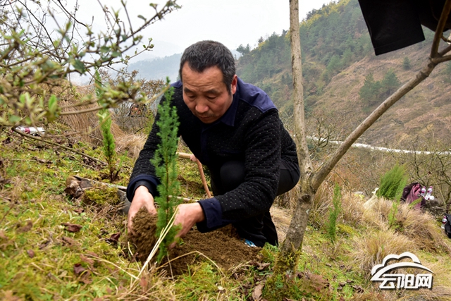 當天早上八點多鐘,200多位手持工具和柏樹苗的干部職工組成了浩浩蕩蕩的植樹“大軍”,向著千峰村生態(tài)造林地進發(fā)。植樹現(xiàn)場位于小地名下巖洞的一片山梁,植樹隊伍克服著山大坡陡、山路崎嶇的困難,在到達植樹現(xiàn)場后,便齊心協(xié)力、有序分工,你打窩、我扶苗,干得熱火朝天。