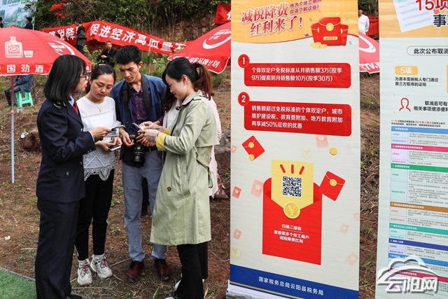 云陽網(wǎng)訊(記者 何競嘉 通訊員 譚曉輝)“我們這個專業(yè)合作社剛剛起步,專門銷售羊肚菌,100元/斤,前兩天剛?cè)ザ悇站诌M行了申報,可以享受哪些稅收優(yōu)惠呢?”4月23日,縣稅務局的稅務干部們來到無量山映山紅公園,通過搭建展臺、發(fā)宣傳單、面對面講解等形式宣傳減稅降費政策。