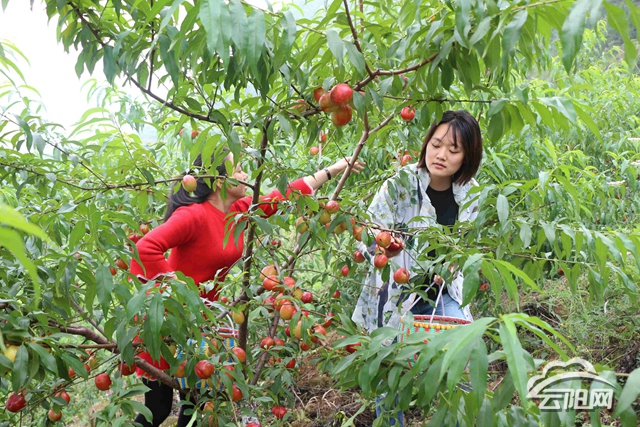 云陽(yáng)網(wǎng)訊(記者 劉雪梅)近日,記者來(lái)到渠馬鎮(zhèn)促進(jìn)村桃園采訪,看到很多游客正在采摘油桃,桃園里一派熱鬧景象。