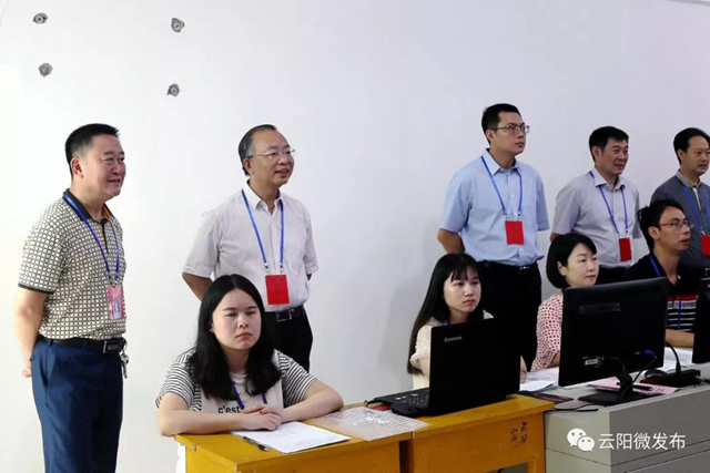 當天上午,張學鋒一行先后來到云陽中學、中山外國語學校、雙江中學高考考點視頻監控中心,詳細了解全縣高三學生參考人數、考務安排、服務保障等情況,親切看望值守高考的一線工作人員。開考首日,為了給考生營造良好考試環境,我縣各考點周邊已實行交通管制,監考、考務、交巡警、醫療等相關工作人員全部持證上崗到位。在各考點視頻監控中心,考務人員認真執守。從監控視頻看到,各考場監考老師嚴肅執考,考生專心答題,高考秩序井然。