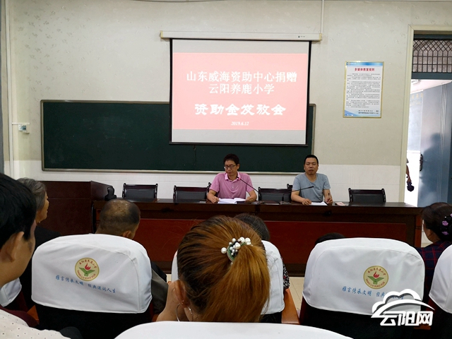 云陽網訊(通訊員 胡將)拳拳愛心托起希望,捐資助學點亮夢想。6月12日,山東威海資助中心捐贈云陽貧困學生資助金1萬元發放會在養鹿小學舉行,20名貧困學生進行接受了資助。