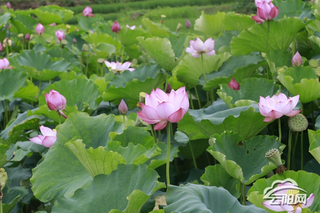 不時隨風輕擺,展露著清新高潔的風韻,成為夏日里一道靚麗的風景,吸引游客前來拍照留戀。(王彬彬 攝)