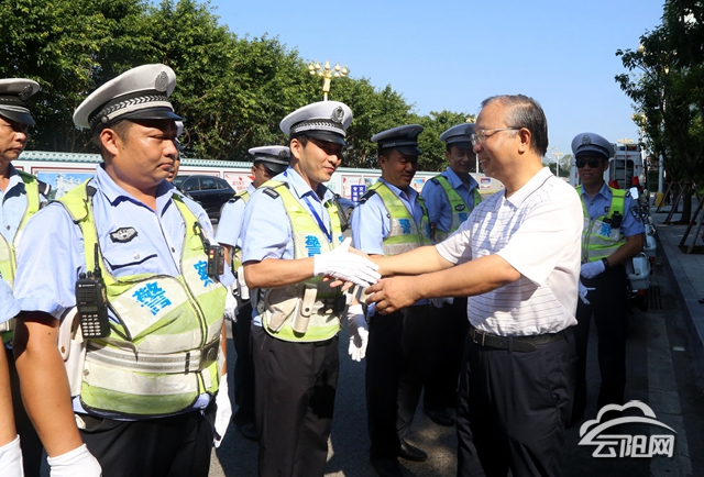 在交巡警現(xiàn)場執(zhí)勤點(diǎn),張學(xué)鋒和交巡警們親切握手,感謝他們?yōu)榫S護(hù)交通安全、有序、暢通所作出的貢獻(xiàn)。張學(xué)鋒說,高溫酷暑天氣給戶外工作的交巡警帶來嚴(yán)峻考驗(yàn),但大家依然堅(jiān)守崗位,不怕吃苦、不怕流汗,用實(shí)際行動(dòng)保障了交通秩序井然。希望大家繼續(xù)發(fā)揚(yáng)優(yōu)良工作作風(fēng),加強(qiáng)巡邏值守,規(guī)范文明執(zhí)法,保障正常交通秩序。同時(shí),社會(huì)各界也要體諒交巡警的辛苦,自覺遵守交通規(guī)則,共同維護(hù)好云陽文明縣城的良好形象。