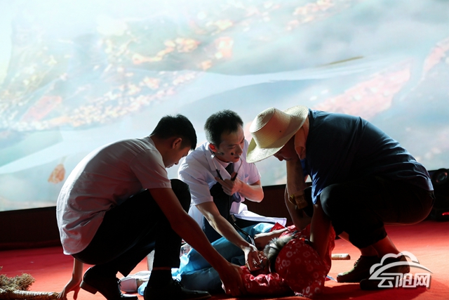 高陽片區帶來的情景詩朗誦《破曉的曙光》深情謳歌了黨帶領全國人民取得的豐功偉績;紅獅片區帶來的情景劇《衛生健康之路》則展現了衛生健康事業發生的翻天覆地變化。接著,鳳鳴片區的小品《我要簽約》、雙江人民醫院的情景劇《在路上》、精衛院的情景舞蹈《大愛無疆》、縣中醫院的情景歌舞《中醫之光耀古今》等節目輪番上演,贏得了現場觀眾陣陣掌聲。文藝匯演在中醫護理技術表演《平衡火罐、中藥火療》中結束。