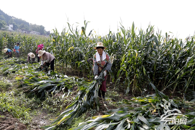 云陽網訊(記者 王彬彬 陳愛玲)8月20日,記者來到盤龍街道青春村田間地頭,見到村民們忙著采收晚熟玉米,載滿著玉米棒子的拖拉機奔忙在田地旁的機耕道上,把一車車玉米棒子運到了村里的集中點。