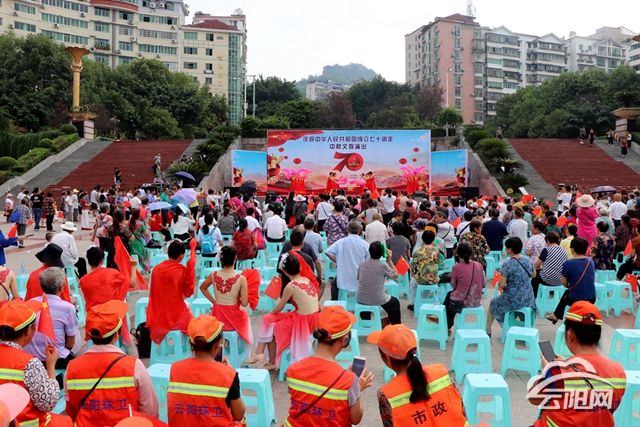 云陽網訊(實習生 劉超)9月10日,由青龍街道主辦,青龍嘴社區、縣經信委等單位聯合承辦的慶祝中華人民共和國成立七十周年中秋文娛演出在群益廣場舉行,轄區干部群眾歡聚一堂,向祖國70華誕獻禮。
