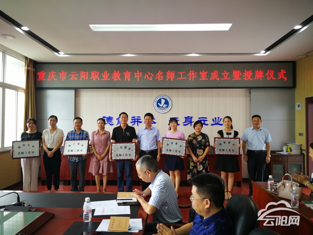 云陽網訊(記者 楊梅娜 通訊員 張小林)9月11日,云陽職教中心舉行電子商務、旅游服務、創新教育、服裝藝術、“三實德育”名師工作室成立暨授牌儀式??h教委職成科、人事科、縣教科所等相關負責人參加儀式并為名師工作室主持人授牌。