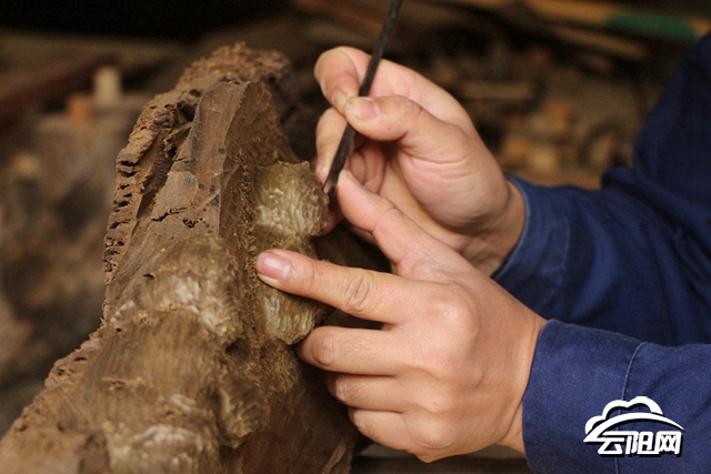 今年是劉康財(cái)從事木雕師傅的第20個年頭,可這20年來,劉康財(cái)?shù)窨痰淖髌穬H有500件。劉康財(cái)笑了笑:“制作木雕不能講究數(shù)量,從選材、構(gòu)思到加工都需要傾注大量心血,制作木雕要根據(jù)木頭本身的模樣進(jìn)行加工,只有這樣才能保留古樸自然的味道。”