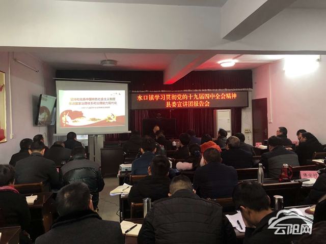 云陽網訊(通訊員 鄧光宏)12月10日,根據縣委統一安排,縣委宣講團黨的十九屆四中全會精神宣講報告會在水口舉行。