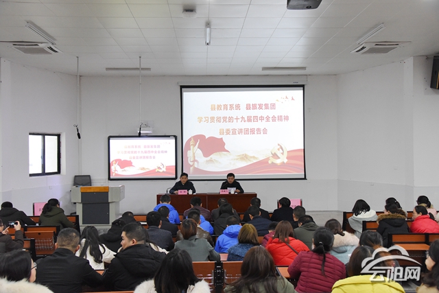 云陽網訊(記者 王彬彬 朱學徽)12月13日,縣教育系統縣旅發集團學習貫徹黨的十九屆四中全會精神宣講報告會在實驗中學召開,縣委宣講團成員徐鋒作宣講報告。