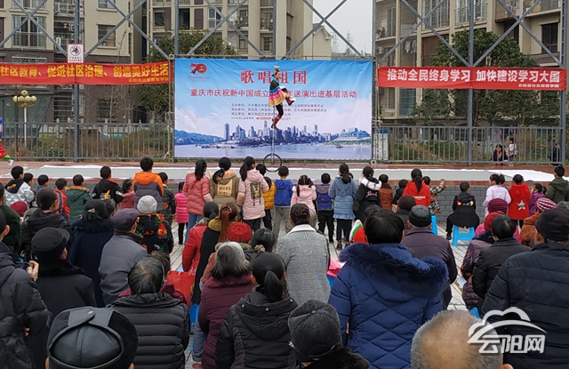 云陽(yáng)網(wǎng)訊(記者 何競(jìng)嘉)近日,由市委宣傳部、市文化和旅游發(fā)展委員會(huì)主辦的“歌唱祖國(guó)——重慶市慶祝新中國(guó)成立70周年送演出進(jìn)基層活動(dòng)”走進(jìn)青龍街道亮水坪社區(qū),將免費(fèi)文化大餐送到了群眾家門口。