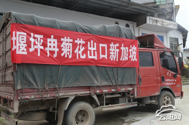 當天,記者在云陽縣晚艷農業開發有限公司看到,工人們一片繁忙,正忙著將裝箱的菊花搬運到運往新加坡興龍國貨公司的集裝箱貨車上。