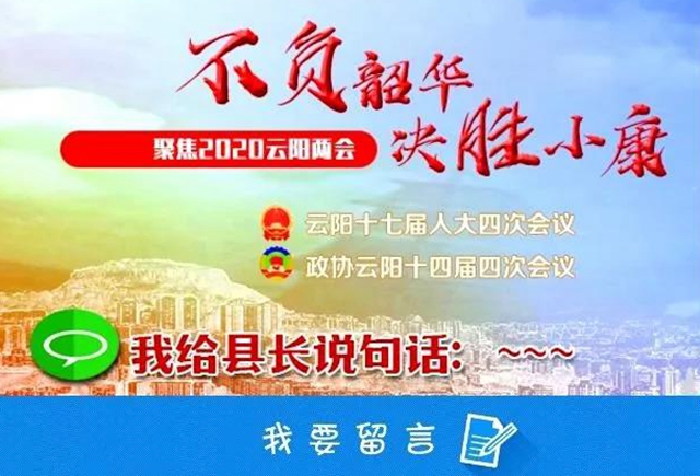 即日起至2020年云陽兩會期間,云陽縣融媒體中心旗下云陽微發布、愛云陽微信公眾號,智慧云陽APP,云陽手機臺,云陽網等新媒體平臺開展“我給縣長說句話”網民建言征集活動。