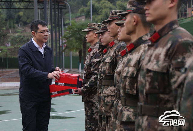 云陽網訊(記者 何競嘉 劉太興)聲聲祝福語,濃濃魚水情。在新春佳節即將到來之際,1月22日,縣委副書記、縣長覃昌德,縣政協主席賴建彬一行到武警中隊看望慰問駐云官兵,代表縣委縣政府向他們致以新春的問候和崇高的敬意。