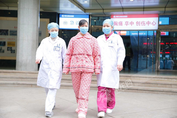 出院患者在醫(yī)務人員陪同下走出醫(yī)院。華龍網-新重慶客戶端 記者 李文科 攝