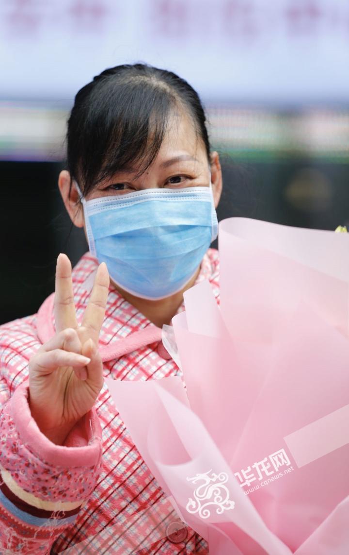 主管護士向出院患者送鮮花。華龍網-新重慶客戶端 記者 李文科 攝