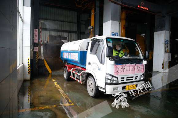 廢棄口罩將被統(tǒng)一裝上垃圾收運車輛。華龍網(wǎng)-新重慶客戶端記者 石濤 攝