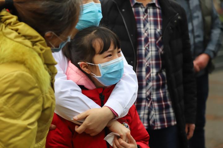 大足區(qū)人民醫(yī)院重癥醫(yī)學科況剛醫(yī)生,妻子也是同醫(yī)院產科醫(yī)生,況剛此前在華西醫(yī)院重癥醫(yī)學科進修,昨天下午接到醫(yī)院通知赴鄂援助,立刻趕回大足。昨晚抵家后,9歲女兒已熟睡,今天一大早就去醫(yī)院做準備動員工作,沒來得及和孩子告別。得知爸爸要去湖北,女兒含淚抱住爸爸不肯放手。 受訪醫(yī)院供圖 華龍網發(fā)